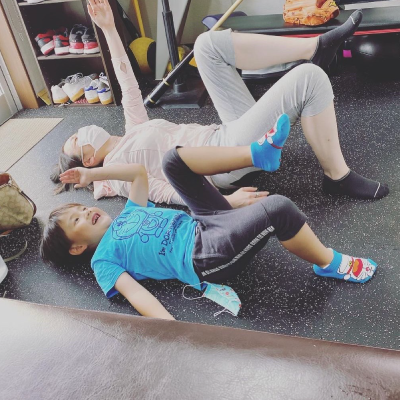 女性のトレーニング💪 お子さんと一緒に体幹トレーニング‼️ 一緒になって頑張ってくれます✌️